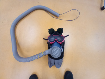 A short adventure game about fixing some stuff in a hazardous environment, with the twist of using a custom physical controller to detect your breathing.
